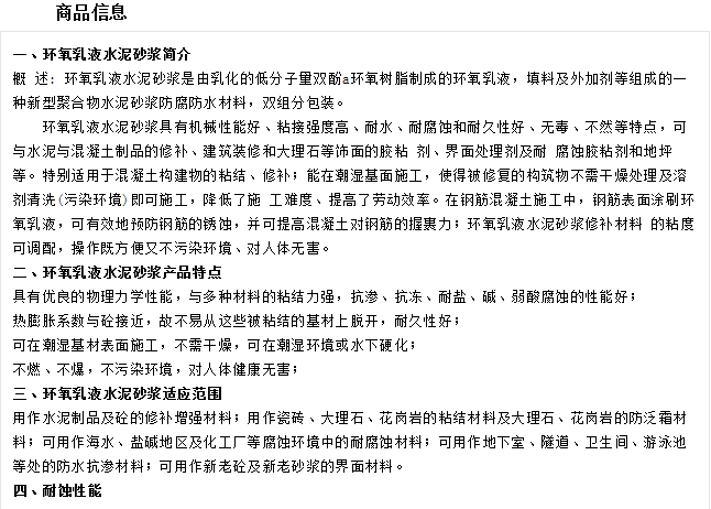 环氧乳液水泥砂浆