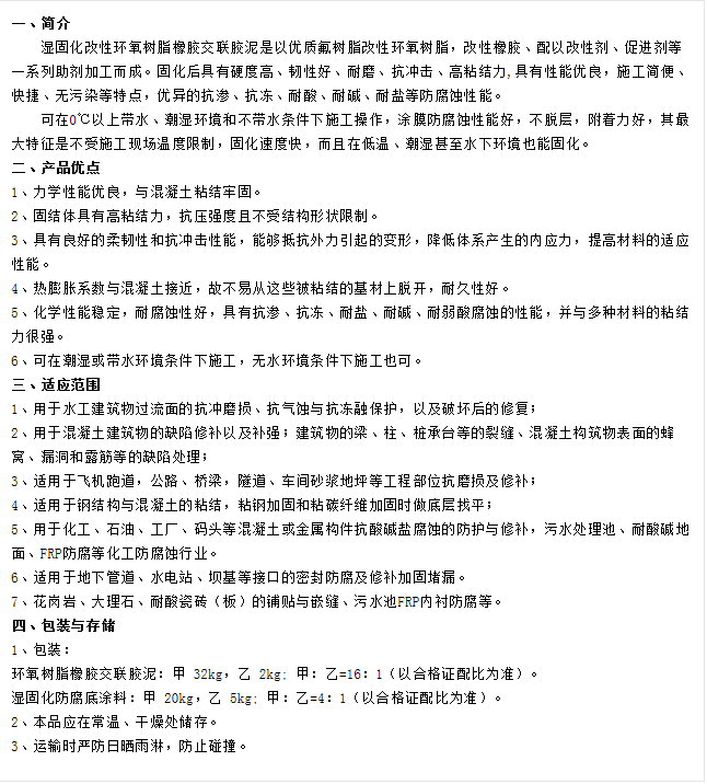 HPSC湿固化型改性环氧胶泥
