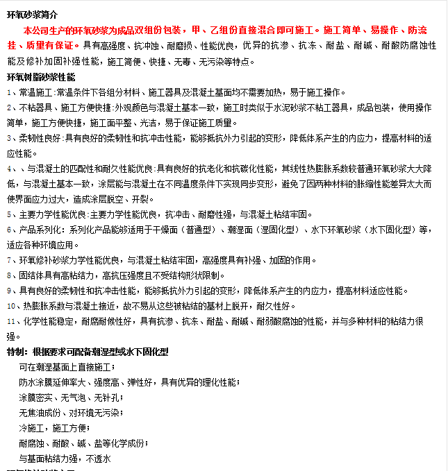 环氧树脂砂浆