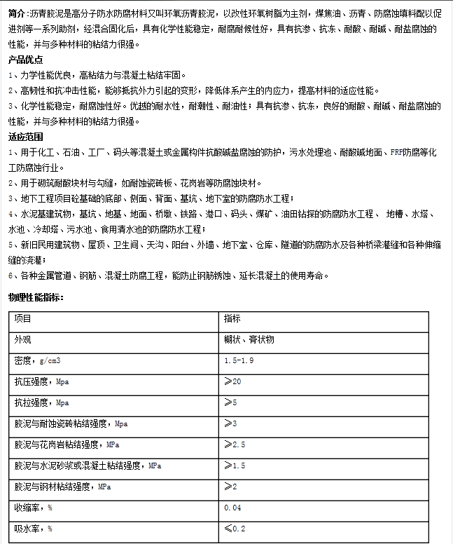 环氧沥青胶泥